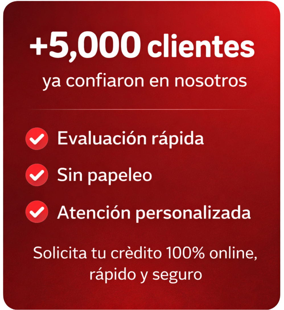 Solicita en minutos, conoce tus cuotas desde el inicio y accede a una solución pensada para acompañarte cuando lo necesitas.